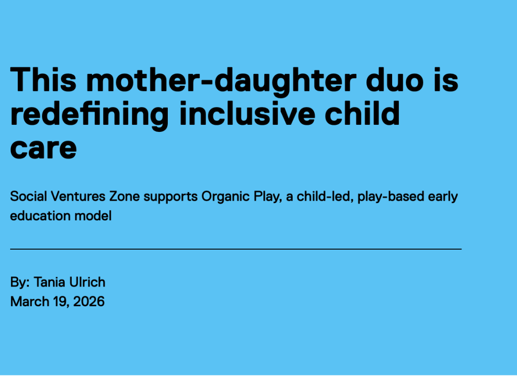 Organic Play™ has been supported and featured by the Social Venture Zone, recognizing our work in building new pathways for Inclusive early childhood Education